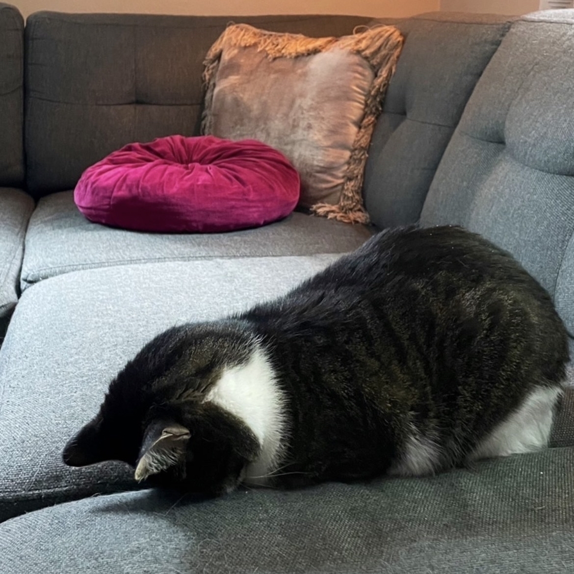 Here are some pictures of my cat sleeping like a weirdo. π±